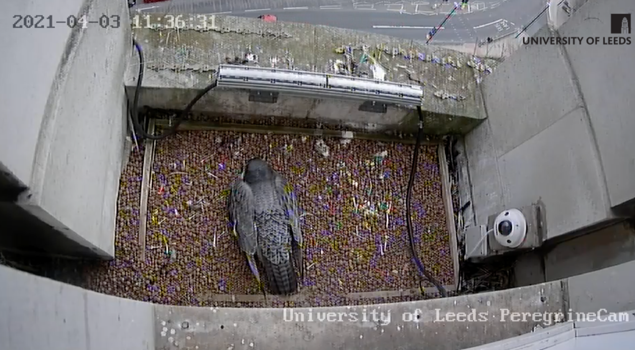 They don’t belong to Leeds University, but peregrine falcons are nesting in the top of Leeds University’s Parkinson Building and are now incubating four eggs. In Spring 2018 and 2019 they successfully raised seven chicks. In 2020 they were seen now and again on the nesting platform but did not nest. In 2021 they laid three eggs in late March but, unfortunately, none hatched.