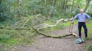 Silver Birch seem to be falling like nine pins at the moment. With this one, the top 30 feet of the trunk had snapped off and fallen across the route of the Meanwood Valley Trail (to the left) and the path up to the cricket ground on the right. Believe it or not, this is the same spot as that shown in the previous picture – use the two trunks in a V shape in the centre of the picture as a reference point.