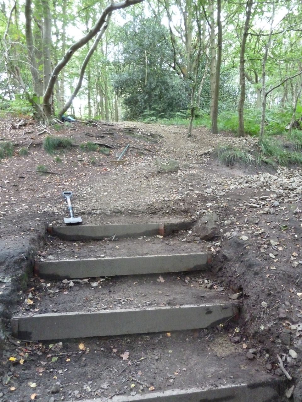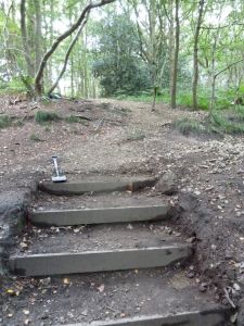 Gravel from the path had fallen onto the top of the steps down from Stairfoot Lane car park to the stream. David and your faithful reporter spent half an hour removing the offending stones.