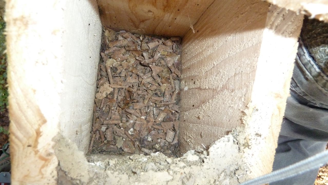 Everyone else left by 1 pm, but Steve and your correspondent completed the survey by cleaning the boxes from the Slabbering Baby up to the cricket pitch. Again most of the boxes had been used. A special find was that one of the boxes (number 47, south of the cricket field) had been used by a nuthatch. It had used mud to fill in the cracks around the roof and the nesting material was all birch bark chippings . That it was a nuthatch nest was later confirmed by an almost identical picture on the internet.