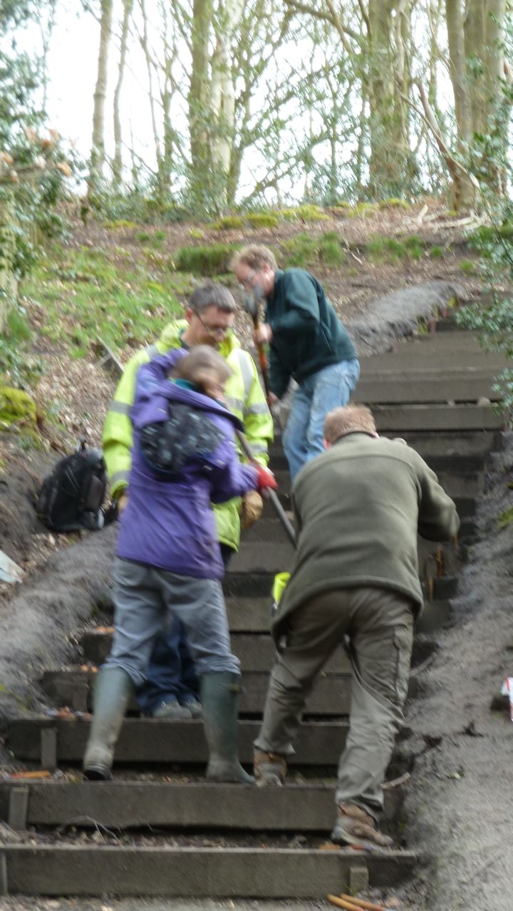some additional pins in the Stairfoot Lane steps before clearing some of the mud from Crag Lane and putting in hard core so that it is passable without wellies!
