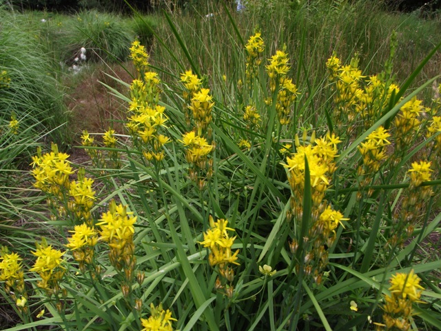 It was a beautiful morning: there were many butterflies fluttering about in the bog, and the display of orchids, bog asphodel (narthecium ossifragum – I know I am teaching my grandmother to suck eggs!), potentilla erecta, cotton grass (eriophorum angustifolium) and calluna vulgaris (OK, ling or common heather) was a joy to behold.