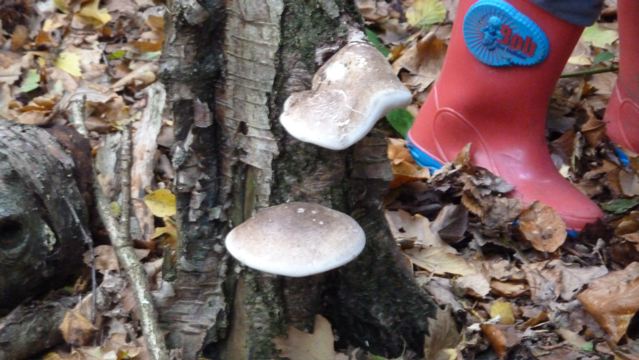 Once in the plantation, search parties set off enthusiastically to hunt for fungi, showing Steve specimens of all kinds of fungi or bringing them to him for identification. Steve showed us interesting features of the specimens and impressed us with his knowledge not only of their common English names but also with their latin names! Modestly, he told us that if you can learn to recognise the 24 most common fungi, you will be able to identify most of the fungi you find on a walk in the woods: it is the other 12,500 species which are the difficult ones! Your correspondent managed to learn to identify three more species of fungi – candlesnuff, turkeytails and the deceiver. Only 12,520 more to learn!