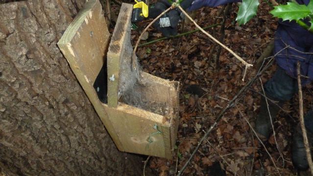 By the end of our survey, all nest boxes had been adapted so that they could be lifted down from the trees to be cleaned (originally they were nailed on to the trees).