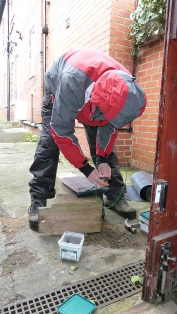 We did not adapt all of the nest boxes last January and so today we took the opportunity to take down damp unadapted boxes and replace them with refurbished boxes so far as the supply of refurbished boxes allowed and one or two we refurbished “on the job”.
