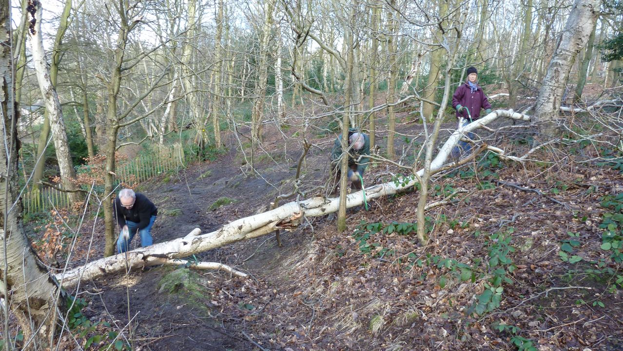 A birch tree had come down across the path near the Stairfoot Lane steps and so Beth and Graham were despatched to start work on clearing it.
