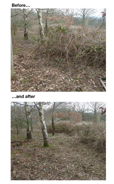The work we have been doing over previous years has clearly been helpful because the areas we have worked on were still very clear. Today we concentrated on areas to the north of the woodland (near Stairfoot Lane) and to the south. Our aim is simply to clear the brambles from the trees while leaving areas of brambles to provide cover for nesting birds and small mammals.