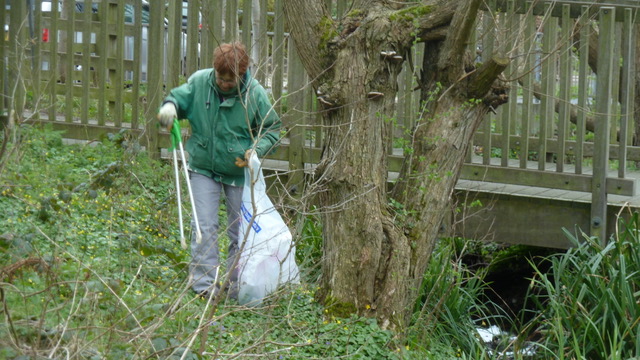 At Nanny Beck we were joined by a Geoff and Sylvia and while Sylvia and Brian picked up litter, Geoff and your correspondent cleared some of the branches which had fallen across and into the stream.