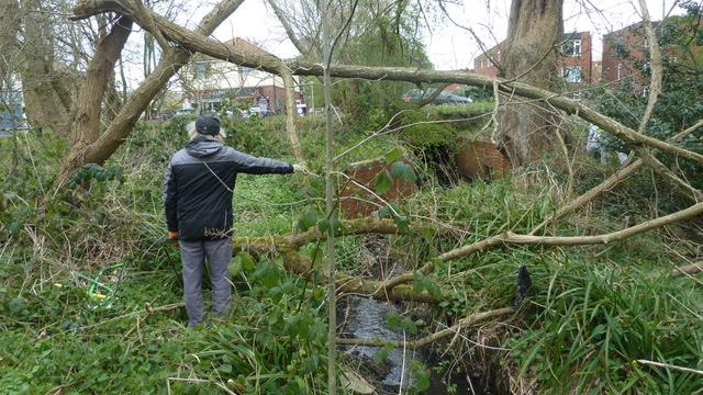 In the limited time available (30 minutes) we were able to remove a number of branches which had fallen across the stream, but not all. However, the stream did look a lot more open by the time we had finished.