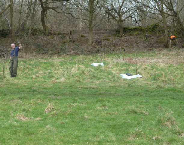 Steve Joul spent today planting ten sapling fruit trees in the disused rugby field to the north of Crag Lane. If you can’t see them very clearly in the photograph, it is because they are only about a metre and a half in height and they are planted well apart so that they have space to develop fully.