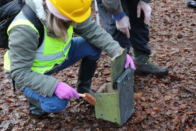 Like many of the nest boxes we surveyed on the 9th, most nest boxes contained two nests – one from Spring 2020, and another on top of it from Spring 2021. This was because we were unable to clean and survey the boxes in January 2021 due to Covid 19.