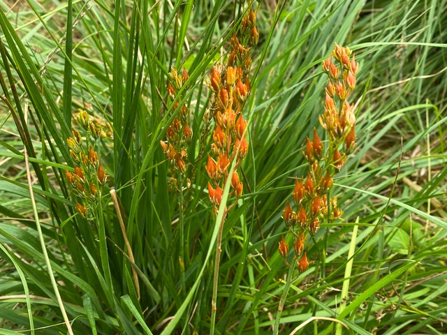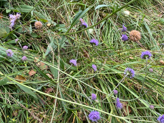It is home to various plants that like wet conditions – such as rushes, Devil’s Bit Scabious, and Bog Asphodel – but it is gradually drying out, partly due to the surrounding trees and the seeding of trees within the bog, and this year partly because of the dry summer.