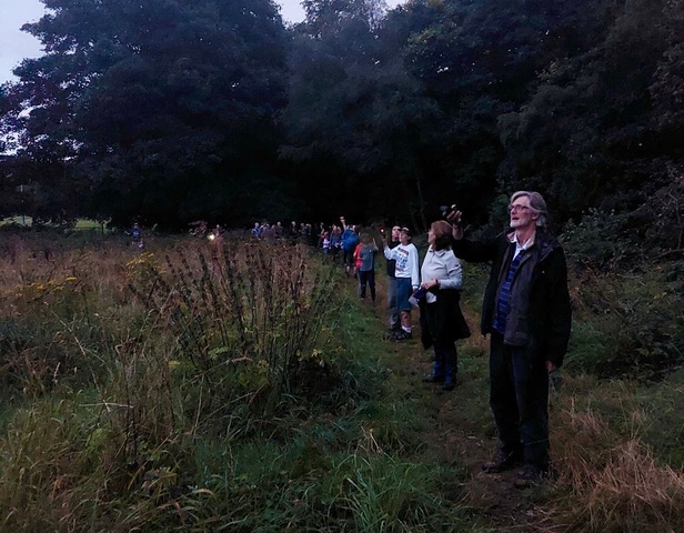 A fine evening for a bat walk led by our local council ranger, David Preston, ably supported by fellow ranger Toby Amos from Gotts Park in Armley. We had thirty five attendees – twenty six adults and nine children.