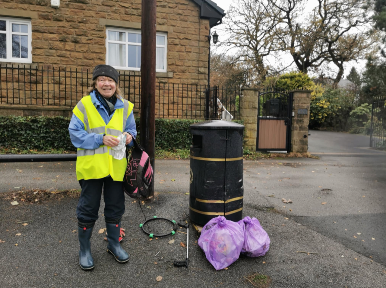 Two of our regulars set off and picked up litter from the banks of Nanny Beck (the stream running alongside Buck Stone Road), the recreation ground and the trees around it. They picked up two and a half bags of litter including a child’s wooden rattle.