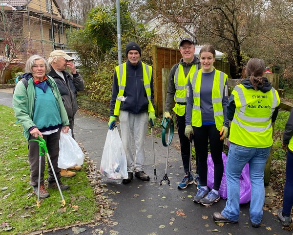 In the event, whilst Storm Bert caused havoc and mayhem elsewhere across the UK, in Alwoodley and Adel the rain had stopped by 10 am, and eight volunteers met up at the Slabbering Baby entrance to the woods – four old hands, and four newbies. It turned out to be a very pleasant morning.