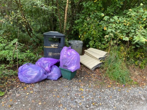 They made their way up Buckstone Road, across the Village Green, and along Crag Lane to Adel Crag where they found and cleared up bags of litter which had been left to the right of the Crag. Together they filled one and a half purple bags.