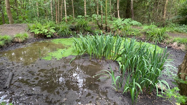Adel Pond is an important breeding place for frogs and palmate newts but it has suffered inthis year’s drought. A leak of water from the pond around the sluice gate on the southern side of the pond has made the situation worse.