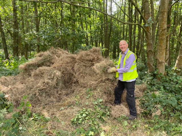 The rest of us raked the mowings into piles and transported them into compost heaps in the woodland edge.