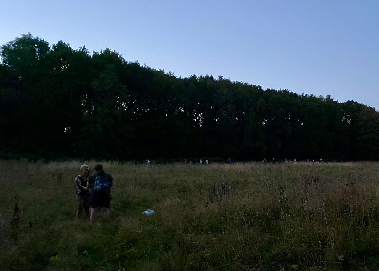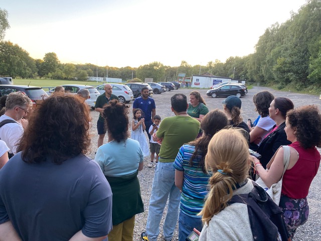 A beautiful evening and twenty nine adults and eleven children gathered in Alwoodley Village Green car park at 7.45 pm for a bat walk led by Leeds City Council rangers, Rachel Todner and Joe Craig-Jackson.