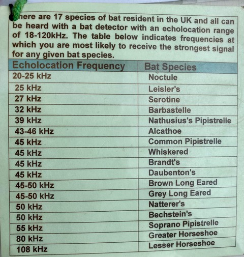 She explained that there are seventeen breeding species of bat in the UK which each make echolocation sounds at specific pitches, and this is one of the ways that we can tell which bat species are flying in the vicinity.
