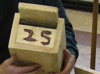 From Old Leo’s we made our way into the woods to have a look at some bat boxes made and put up by Friends of Adel Woods in 2010 to provide roosting. The chair of FOAW explained that these differ from tit boxes in that there is no round hole in the front of the box. Instead, the back board of the box extends down below the box and bats land on this and crawl up into the box through a slit in the base.