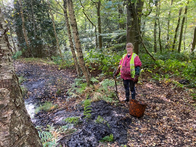 It is important, therefore, to clear as much mud and leaves from the ditch as possible and three volunteers focused on this task.